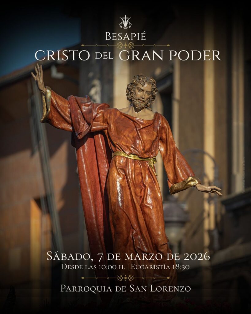 Con inmensa alegría, anunciamos la instauración de un nuevo acto en nuestra Cofradía: el Besapié a nuestro titular, el Cristo del Gran Poder, en nuestra querida Parroquia de San Lorenzo.