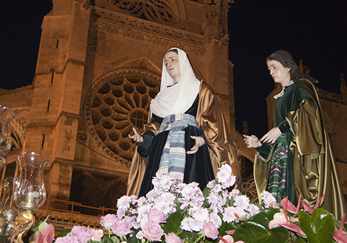 Se incorporan al cortejo las imágenes de los Apóstoles Santiago, San Pedro y San Juan, procedentes del antiguo retablo del altar mayor de la Catedral de León y atribuidas a Andrés Tomé.