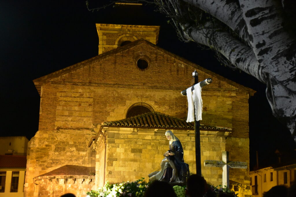 Salida: Convento RR. MM. Benedictinas – Carbajalas, Plaza del Grano, Juan II, Fernández Cadórniga, Plaza de Don Gutierre, Zapaterías, Plaza de San Martín, Plegaria (ofrenda al Cristo de Fuera de la Iglesia de San Martín), Plaza Mayor (sin vuelta), Mariano Domínguez Berrueta, Plaza de Regla, Ancha, Hermandad Sacramental de Santa Marta y de la Sagrada Cena, Plaza San Marcelo, Teatro, La Rúa, Plaza de las Concepciones, Fernández Cadórniga, Juan II, Plaza de Santa María del Camino (Plaza del Grano), Convento RR. MM. Benedictinas – Carbajalas.