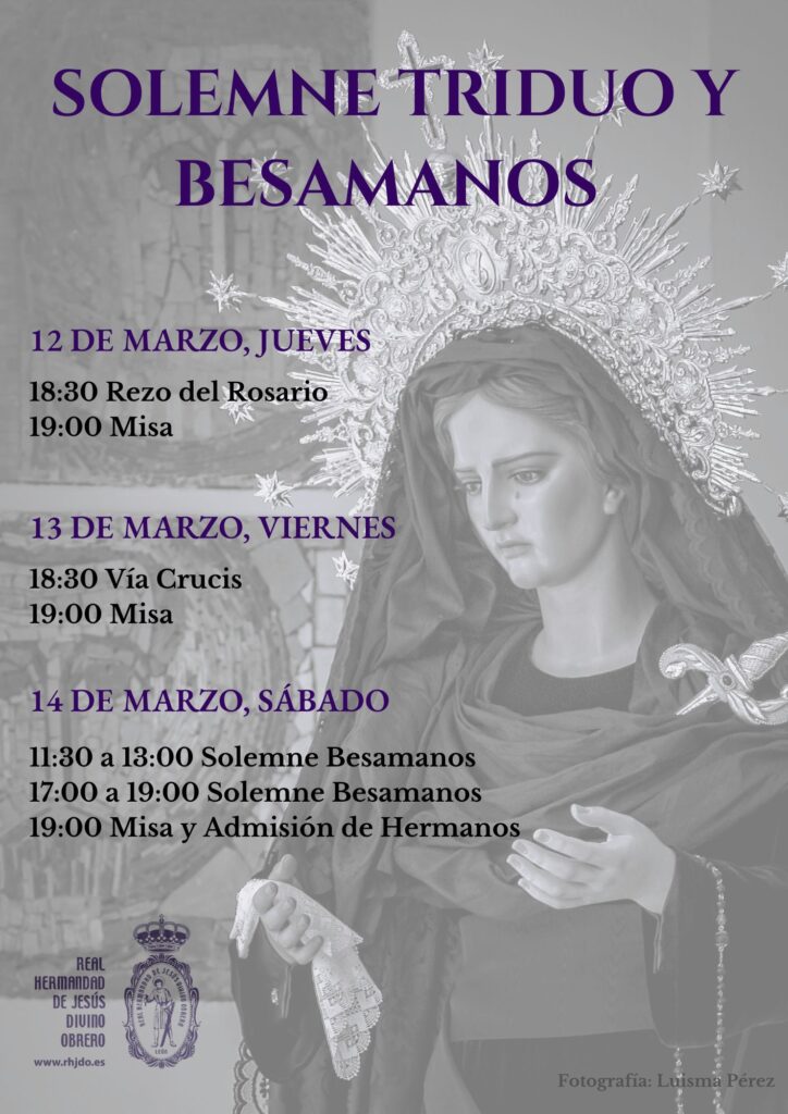 La Real Hermandad de Jesús Divino Obrero celebrará esta semana el Solemne Triduo y Besamanos en honor a la Virgen