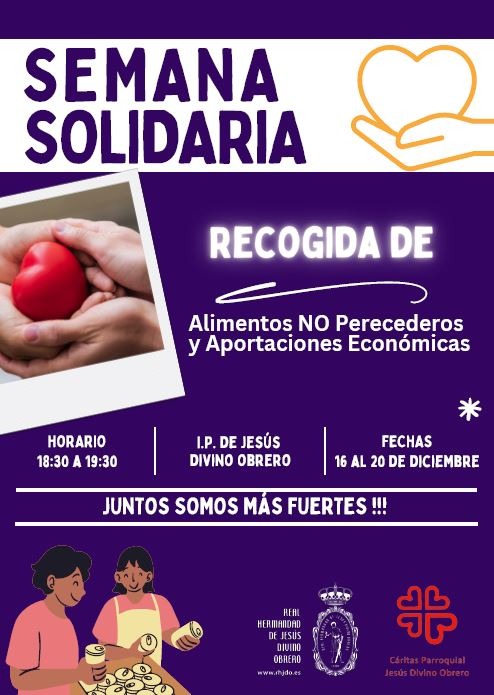 La Semana Solidaria de la Real Hermandad de Jesús Divino Obrero tendrá lugar la próxima