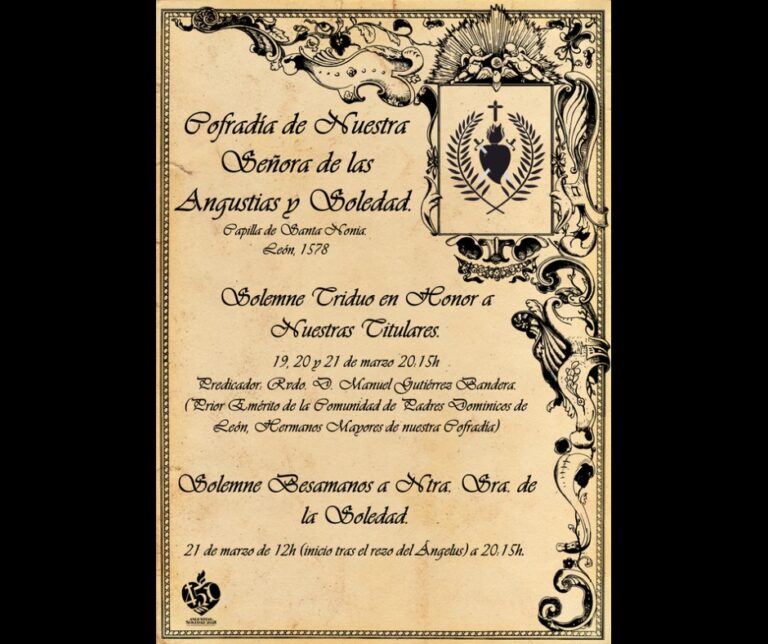 La Cofradía Santo Sepulcro-Esperanza de la Vida celebra, el próximo viernes día 1 de marzo