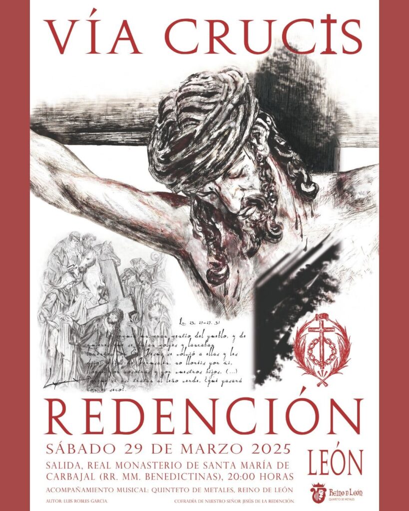 Durante el recorrido, los fieles acompañarán el rezo de las Estaciones del Vía Crucis, un acto de recogimiento y oración en preparación para la Semana Santa. Asimismo, contaremos con el acompañamiento musical del Quinteto de Metales Reino de León, que contribuirá a realzar la solemnidad del acto.