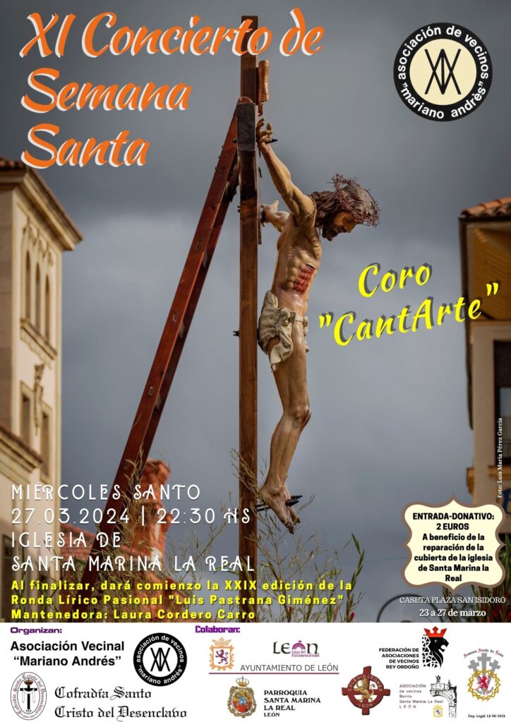 Organizado por la A.VV. «Mariano Andrés» y la Cofradía del Santo Cristo del Desenclavo, será el MIÉRCOLES 27 DE MARZO, a las 22,30 hs en la iglesia de Santa Marina la Real.